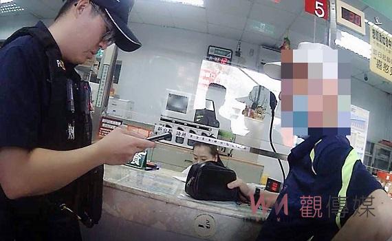 ▲警員曾冠傑到場與許姓老翁懇談,老翁表示「提款60萬元現金,是要2位孫女當錢母」堅持沒有被騙。