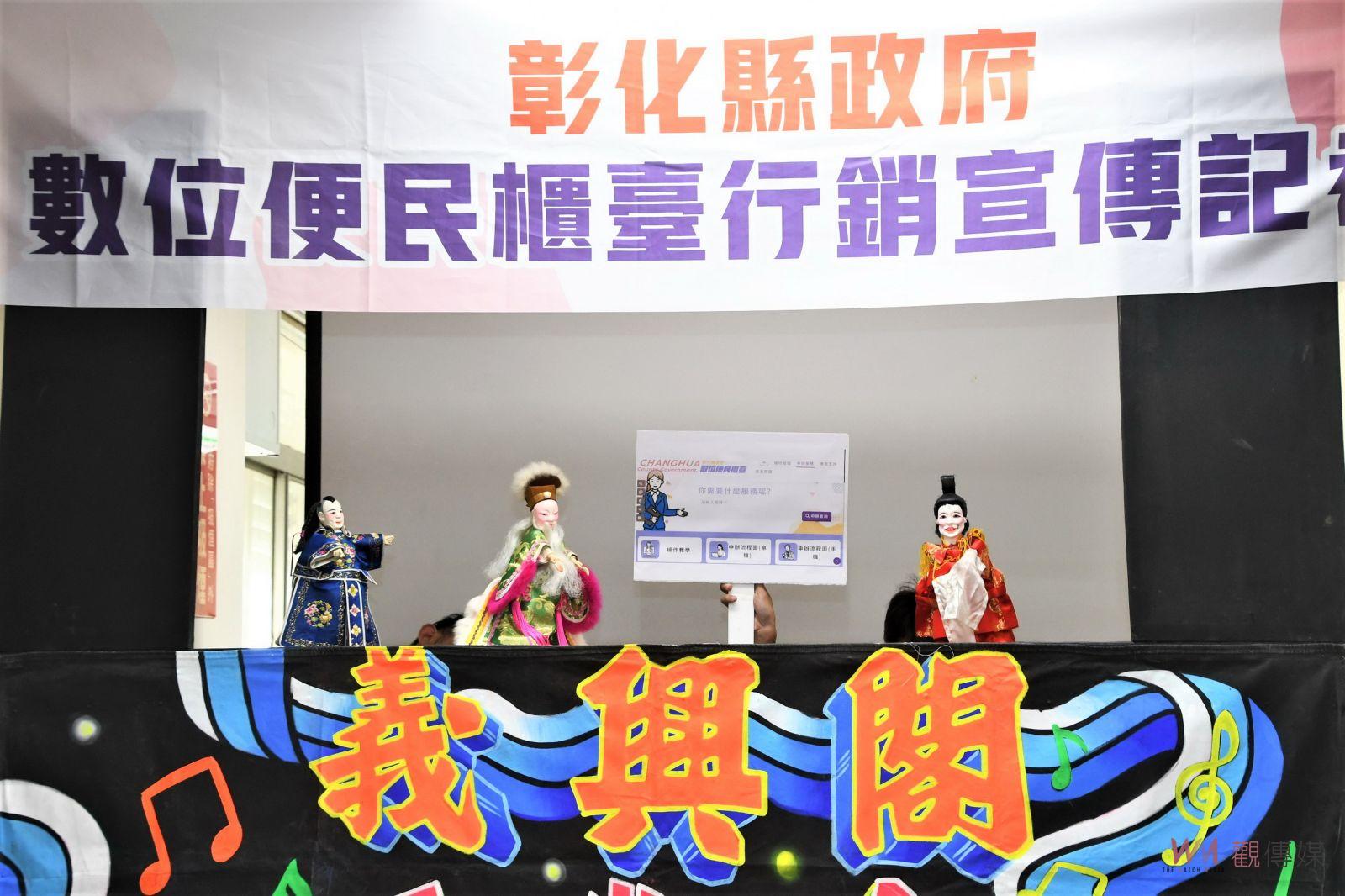 數位發展部多元創新司長莊明芬表示,彰化縣政府用心推動數位便民櫃臺服務,這是非常重要的便民服務,於數位時代打造智慧政府,透過個人化資料自主運用系統快速進行業務申辦,簡化申辦流程及民眾奔走不同行政機關申辦文件的時間,希望彰化縣民能夠多加利用,宣傳會邀請國寶級的「義興閣」,以詼諧逗趣的「掌中劇」來強化宣導,增添許多歡樂的氣氛。