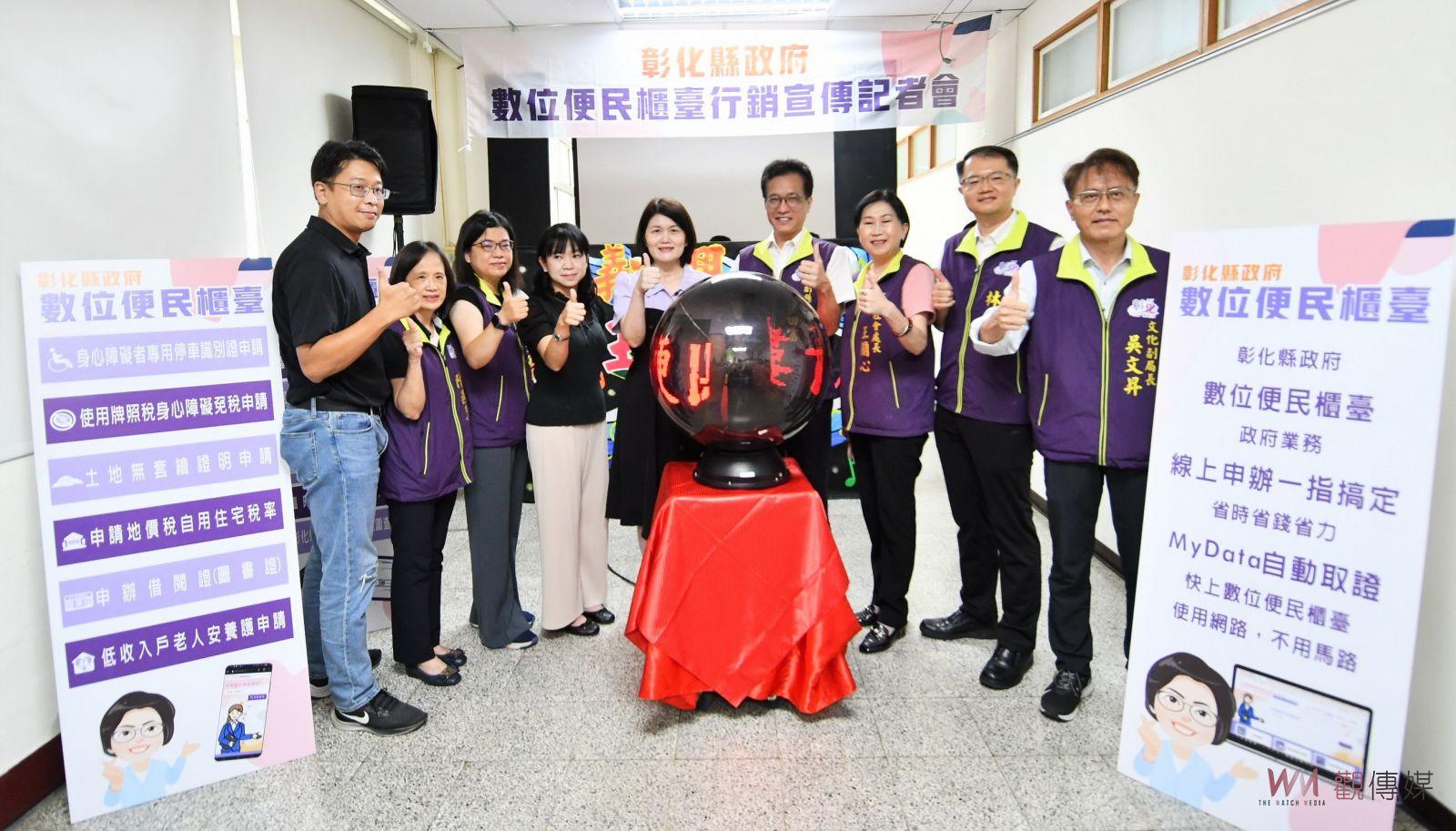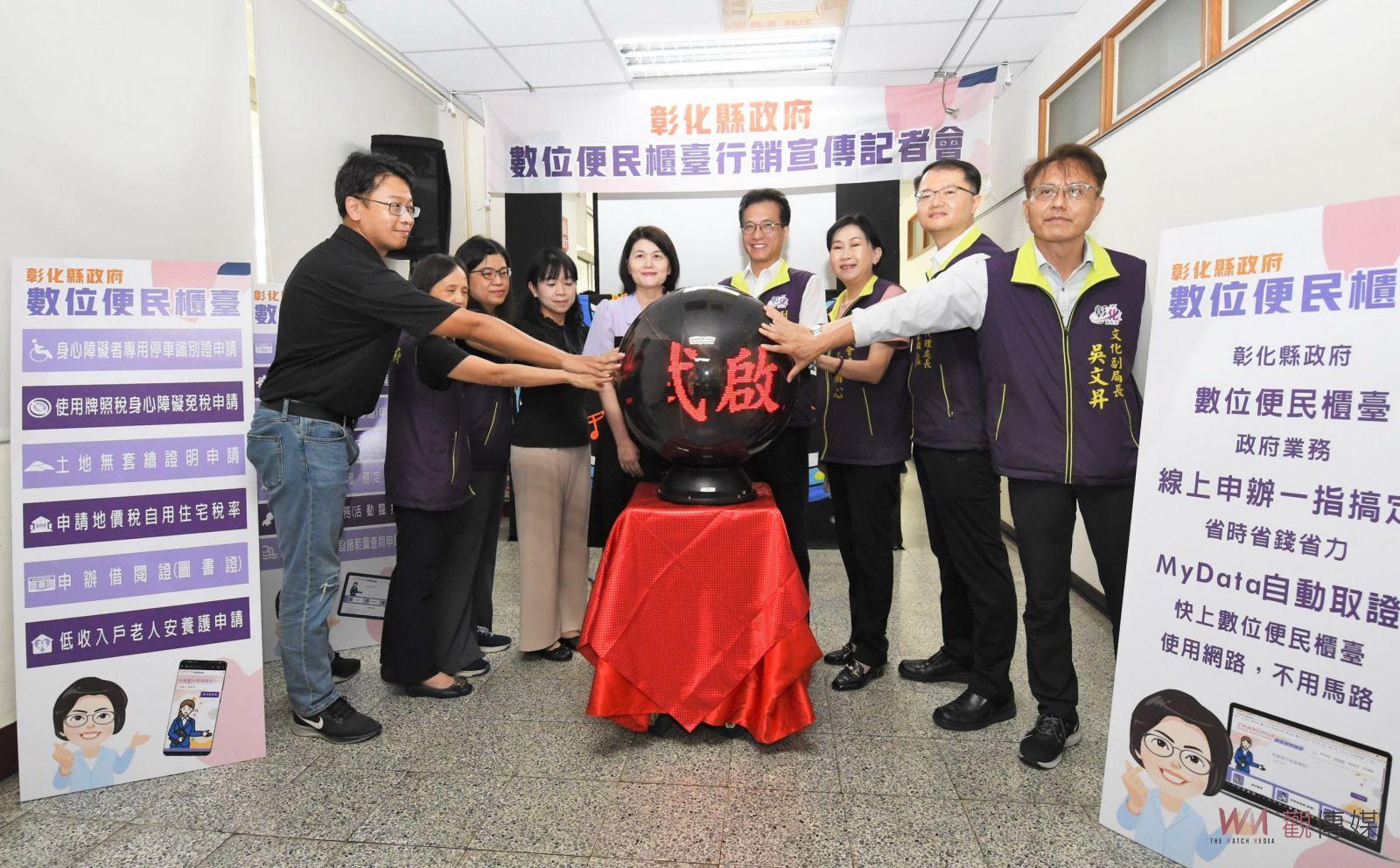 (觀傳媒彰化新聞)【記者陳雅芳/彰化報導】網路結合AI服務日趨普及,彰化縣政府獲得中央數位部支持下,建構更完善的一條龍「數位便民櫃臺」,計畫處今(15)日上午舉辦「數位便民櫃臺行銷宣傳會」,彰化縣副縣長林田富說,民眾不需奔波,使用手機就可上網申辦社會福利、稅務金融、建築管理、文化、水利資源和道路改善等13項業務,向智慧新城市邁進一大步。