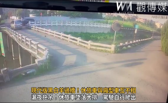 (觀傳媒彰化新聞)【記者陳雅芳/彰化報導】黑白羊過橋翻版故事!彰化市埔內街大埔截水溝堤岸道路,今(15)日傍晚發生同車廠的休旅車與廂型車互不相讓結果碰撞了,休旅車飛落大排水溝內四輪朝天駕駛爬出車外,廂型車女駕駛肢體疼痛,2人由救護車送秀傳醫院治療,所幸都無生命危險,事故原因與肇事責任仍待進一步釐清。