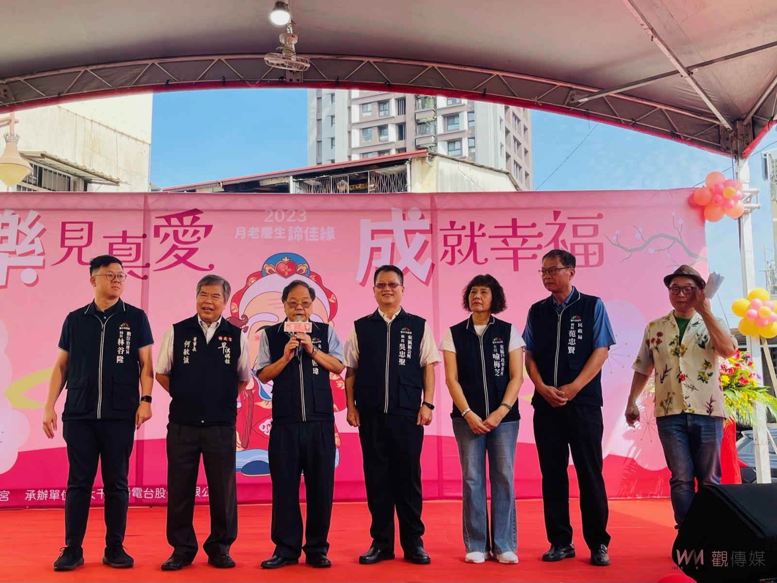 (觀傳媒中彰投新聞)【記者顏淑娟/台中報導】台中市樂成宮除主神媽祖外,也恭奉月老星君,近年來台中樂成宮月老星君在網路票選排名全台灣第一名。為慶祝月老星君聖誕,今(16)日隆重舉行祝壽典禮暨「樂見真愛 成就幸福 月老慶生締佳緣」未婚聯誼活動,吸引400名未婚男女參加。