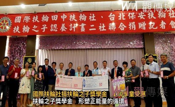 ▲國際扶輪田中扶輪社、台北保安扶輪社二社聯合推動扶輪之子認養,頒扶輪之子獎學金嘉惠田中等偏鄉學童,有170學童受惠,校長們都親自出席捐贈會。