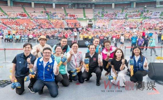 這場成果饗宴特別融入「伯公照顧站據點成果展」,由客家局邀請金曲獎得主王鳳珠老師及金點之星龍潭區三水社區發展協會的35位長者,帶領台下超過千名長者一起做運動,期盼持續營造「活躍老化」、「世代共融」、「共生社區」的精神。