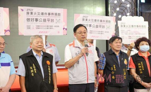 (觀傳媒桃竹苗新聞)【記者曾平/桃園報導】桃園市長張善政今(23)日下午前往桃園區,為屏東科技園區高爾夫球具大火傷亡消防員與受災戶哀悼,並發起「屏東0922火災爆炸事件」救助專案。張善政指出,目前已有4名消防員殉職、數名工廠員工不幸罹難,以及超過百人受傷。桃園幾年前發生嚴重火災,也有消防弟兄不幸罹難,因此,市府將心比心,率先邀集桃園6個主要宮廟共同出錢出力發起救助專案,募得款項提供中央或屏東縣政府相關單位運用,協助受難家屬度過難關。