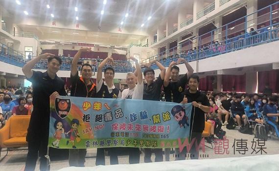 (觀傳媒雲林新聞)【記者洪佳伶/雲林報導】長期熱心社會公益「峰起云湧」影業公司攜手雲林縣警察局少年隊、虎尾高級農工職業學校,辦理「友善校園-校園電影院-反賭、反詐騙、反霸凌」電影欣賞宣導活動。藉由欣賞由杜榮峰導演所執導的校園劇情片-「青春換日線」電影,並結合雲林縣警察局少年隊在場所宣導之「反賭、反詐騙、反霸凌」等犯罪預防知識,提升及強化學生之法治觀念,防範少年遭誘惑而陷入網路簽賭及詐騙陷阱之中,也將「友愛、善待」之種子深植於學生心中,避免校園霸凌事件發生。