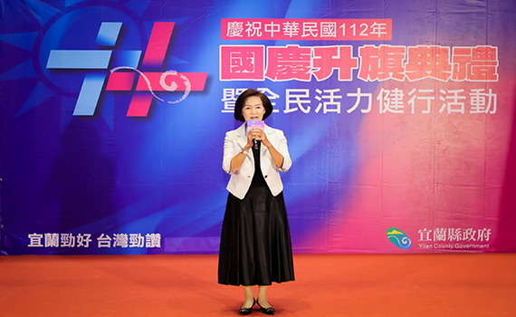 而112年國慶升旗典禮將於10月10日上午6時30分,在宜蘭運動公園田徑場舉行,除升旗典禮外,將安排宜蘭高商學生表演活力舞蹈與儀隊表演,讓活動更加生動活潑。升旗儀式後將進行健行活動,從宜蘭運動公園體育館前廣場出發,經縣政府折返。縣府當天將準備2,000面小國旗發送民眾。另外準備3500份活力早餐贈送全程參與健行活動的民眾(數量有限,送完為止),同時還有機會參加摸彩,獎項有電視、電冰箱、洗衣機、除濕機、腳踏車等豐富獎品。