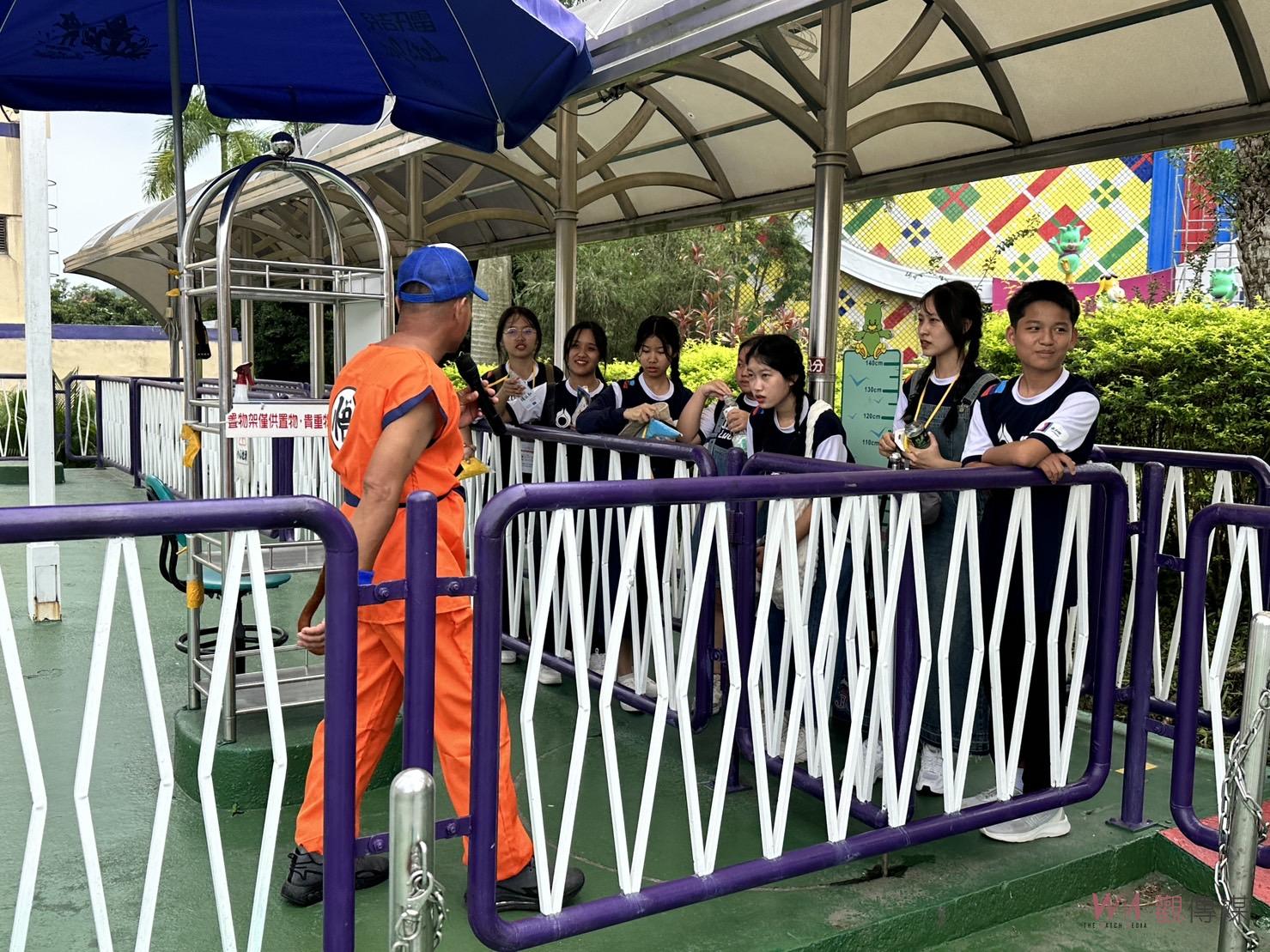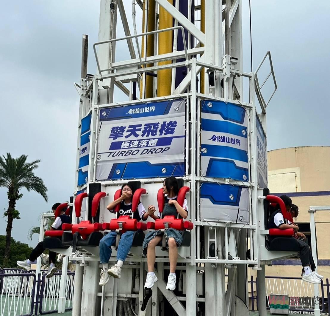 ▲「泰北希望青年代表」的學生們,非常期待搭乘劍湖山世界三飛設施「擎天飛梭」。
