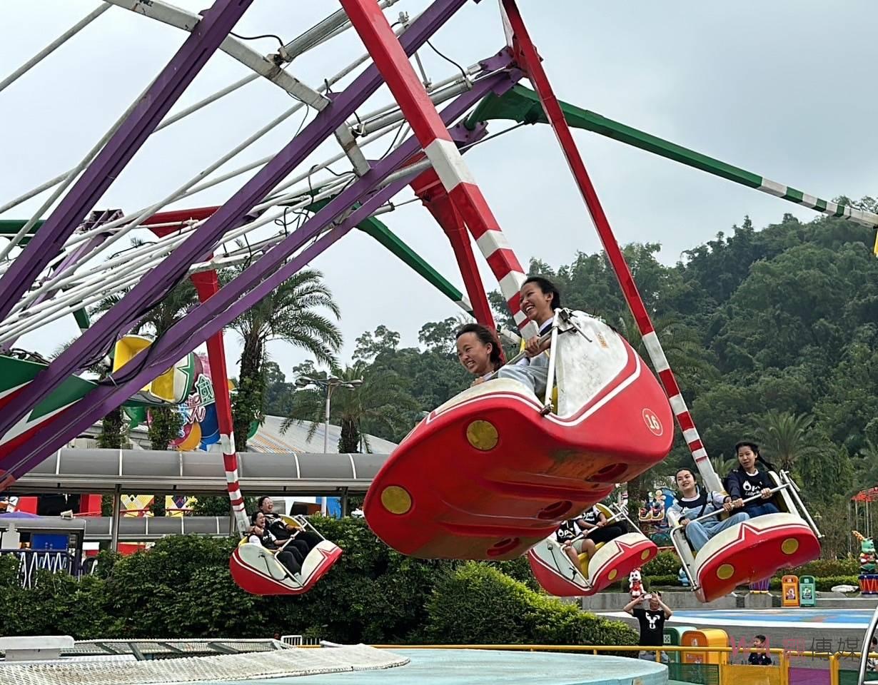 ▲劍湖山世界三暈設施之一「迴旋磁場」讓「泰北希望青年」轉動無比歡樂。