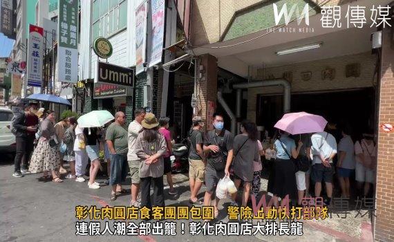 (觀傳媒彰化新聞)【記者陳雅芳/彰化報導】國慶連假彰化知名肉圓排隊名店湧入大批民眾,有人在網路PO出,一群民眾在店門口外等餐,包圍了整個店家,看起來就像來圍事的模樣,還有另一家的肉圓店,也是排了長長人龍,看不到盡頭,饕客說,彰化小吃遠近馳名,很多人喜歡到彰化品嚐小吃,今(10)日是連假最後1天,乾脆來趟報「腹」性的小旅行。