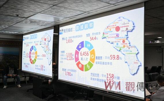 (觀傳媒桃竹苗新聞)【記者曾平/桃園報導】桃園市政府主計處今(12)日下午在市政會議中,進行「從大數據透視桃園市主要景點客群」專案報告指出,依數據分析顯示,去年桃園主要景點遊客計6,456萬人次造訪,其中以青埔休閒遊憩區1,933萬人次最多,整體遊客性別男略多於女,年齡60歲以上及40-49歲較多,居住地以桃園遊客居多,停留時間平均為158分鐘,季節、平假日對遊客人次的影響明顯。