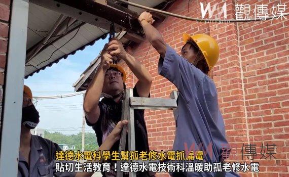 (觀傳媒彰化新聞)【記者陳雅芳/彰化報導】「先勘查現場環境,關閉總電源後再施工!」記得老師在上課時教的,把電線拉整齊!彰化縣達德商工水電技術科老師賴振龍、許世宗帶著20名電機科同學今(15)b4到獨居長輩家中修水電,許世宗說,水電技術人員是現今AI仍無法取代的工作,學生有一技之長,對未來進入職場幫助相當大。
