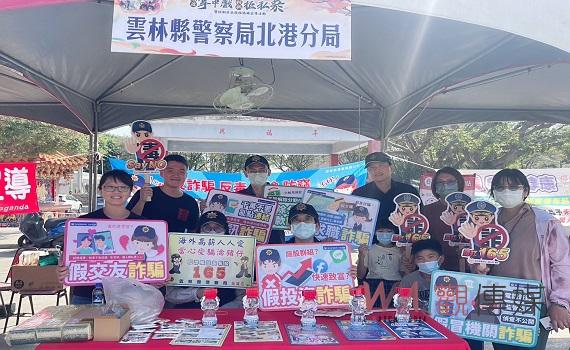 北港警分局偵查隊、第五組組成預防犯罪宣導團到場進行「交通安全」及「反詐騙」宣導,並介紹婦幼安全防治政策,包含遇「性騷擾」、「跟蹤騷擾」、「性影像」與「家庭暴力」等事件的處遇方式,以及警方推動執行「社區警政再出發工作及清源專案3.0」,通過友善通報網及時反映情報,提醒民眾若發現任何不法或可疑情資,立即聯繫警方處理,藉此說明警方強力打擊犯罪之決心。