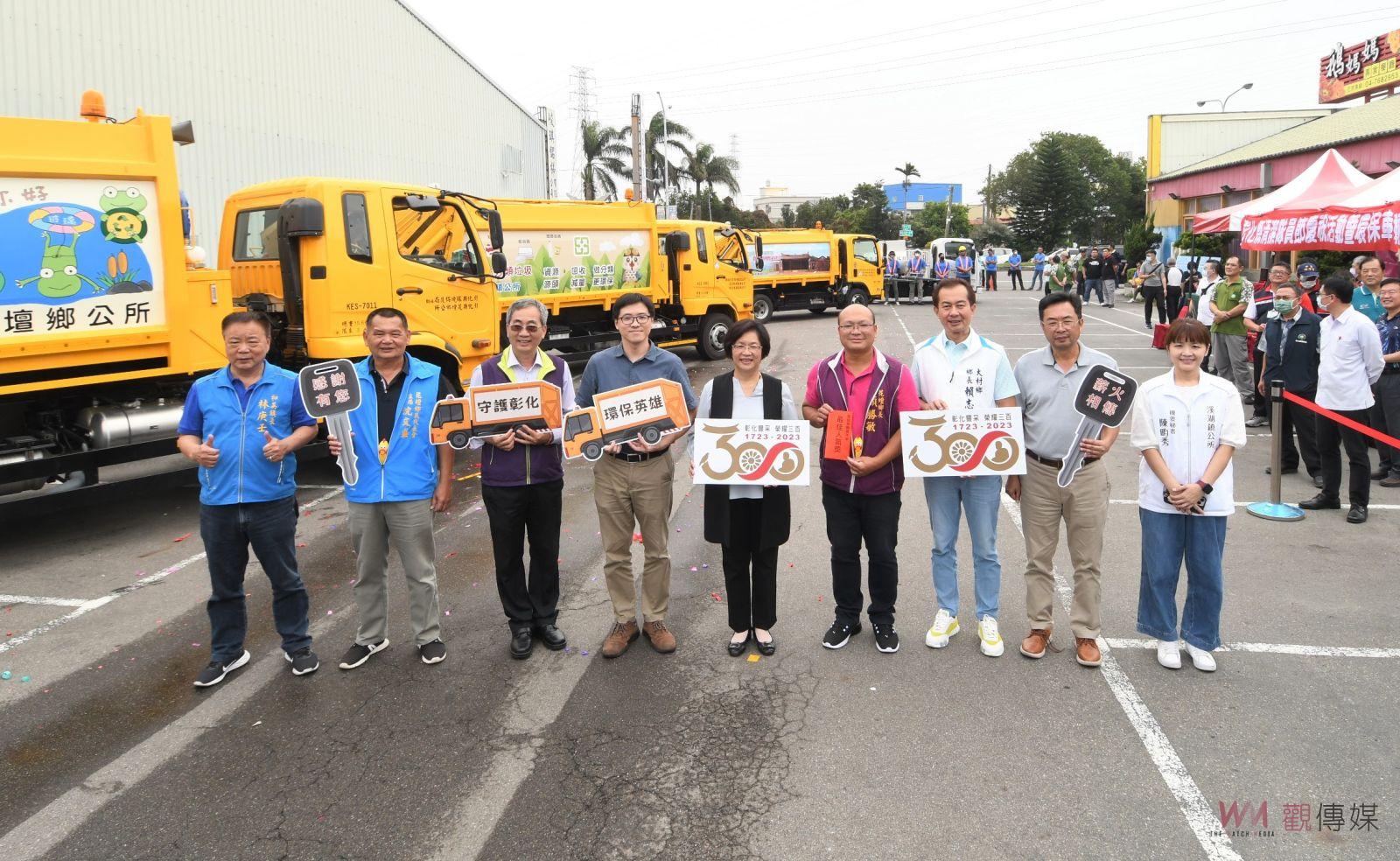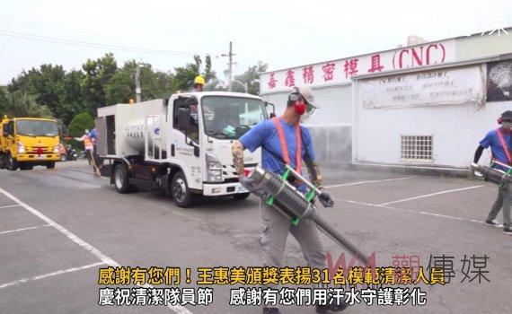 王惠美表示,10月25日是清潔隊員節,縣府舉辦清潔隊員節慶祝活動,感謝所有清潔隊員,感謝有您們 ,用汗水守護彰化,且採購13輛垃圾車、2輛消毒車,共15輛,要讓鄉鎮市公所有好的器材進行環境的維護。