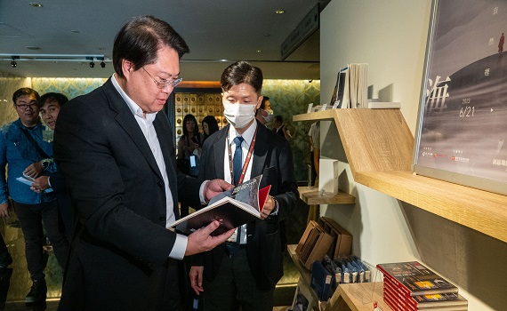 受限參訪時間,林右昌及林清淇無法盡興參觀目前展出的「山海天人:我在自然裡」特展,只能從主視覺中一窺精華,拿到館方致贈的「世界宗教和諧卡」,及《宗教文物之美》一書非常開心,也說日後有時間再來。