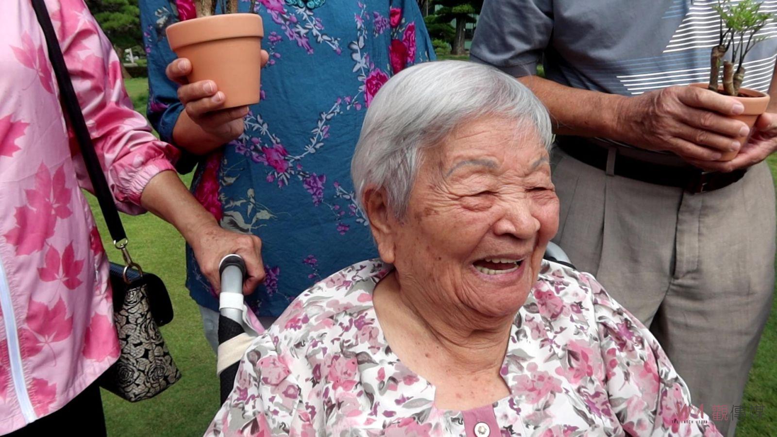 (觀傳媒彰化新聞)【記者陳雅芳/彰化報導】無煩無惱,一身食甲若阿不倒。百歲阿嬤魏林鴛鴦今(23)日在兒女陪同下,到彰化永靖成美文化園遊賞百年黑松,適逢農曆九月九日重陽節,成美文化園執行長章嘉和特別贈送百歲阿嬤她一盆福祿桐的盆栽,也祝阿嬤身體康健,阿嬤說,「無煩無惱,一身食甲若阿不倒」就是她的秘訣。