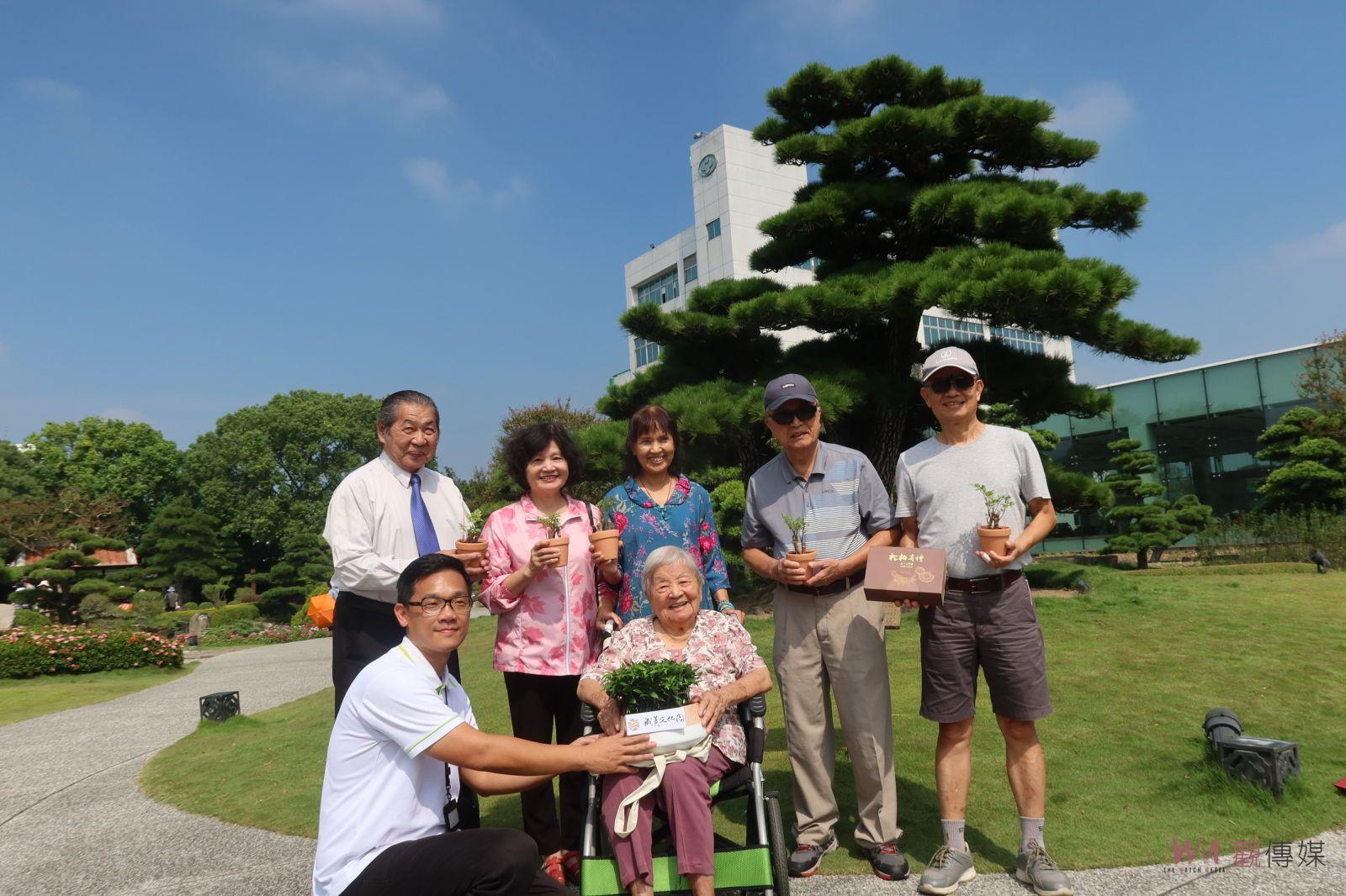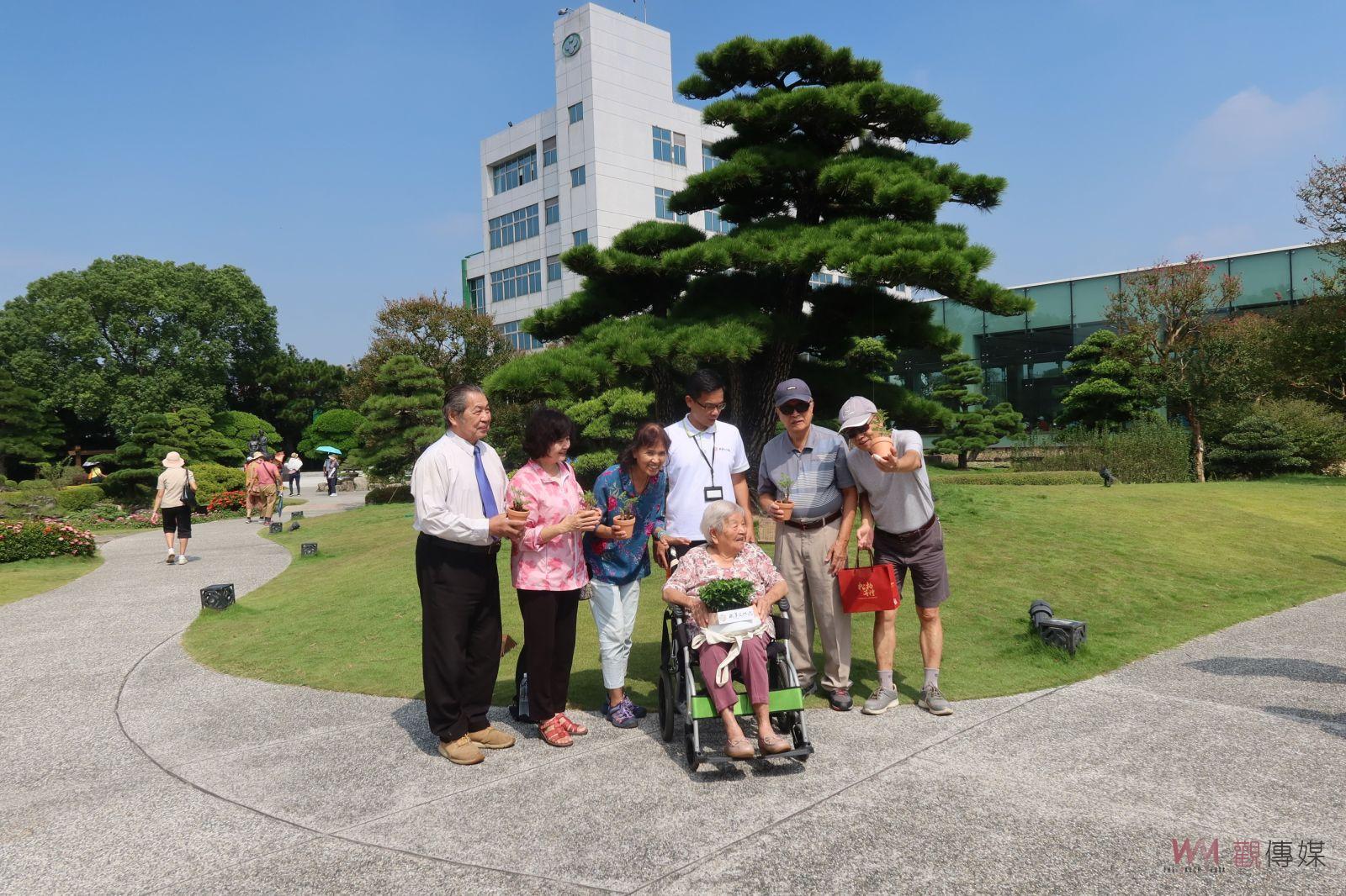 ▲重陽節,成美文化園特別邀請65歲以上的長者免費入園遊賞,執行長章嘉和特別贈送百歲阿嬤一盆福祿桐盆栽,並祝願她身體健康長壽,延續長壽之美。