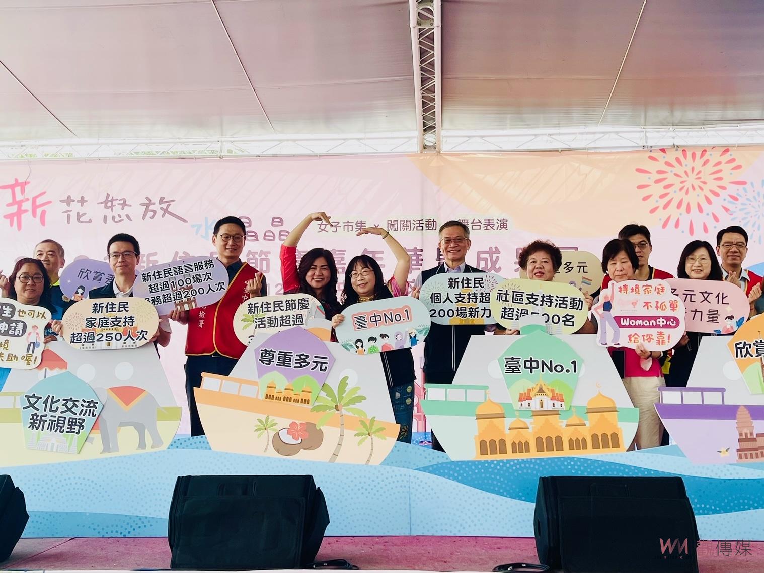 (觀傳媒中彰投新聞)【記者顏淑娟/台中報導】展現新住民力量,台中市婦女及新住民培力平台今(29)日在台中驛鐵道文化園區廣場,舉辦「新花怒放水晶晶」新住民節慶嘉年華暨成果展,社會局長廖靜芝和來自不同國家的新住民家庭一起慶祝,透過水燈儀式傳遞祝福,展現台中國際、多元和友善的城市文化。