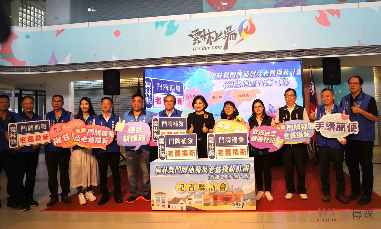 (觀傳媒雲林新聞)【記者蘇榮泉/雲林報導】雲林縣政府率全國各縣市之先開辦海區11鄉鎮門牌約有24萬6886戶免費換、補發作業,2日召開宣傳記者會,縣長張麗善指出,門牌更新、補發有利公共服務管理,提高通訊通郵品質,方便救災、救護定位提高速度效能,請民眾踴躍登記換發、補發。