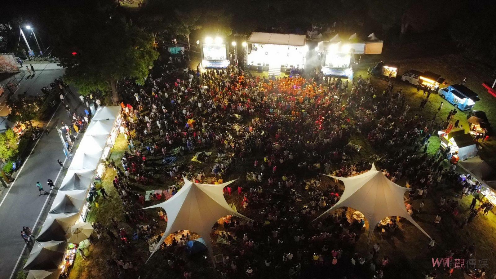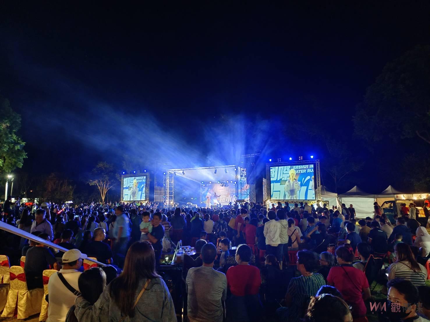 ▲彰化縣政府4日晚間在二水鄉水心之初大草原安排跑水之夜晚會,邀請知名藝人演出,帶來多首經典歌曲,眾多卡司輪番上陣,HIGH翻二水不夜城。