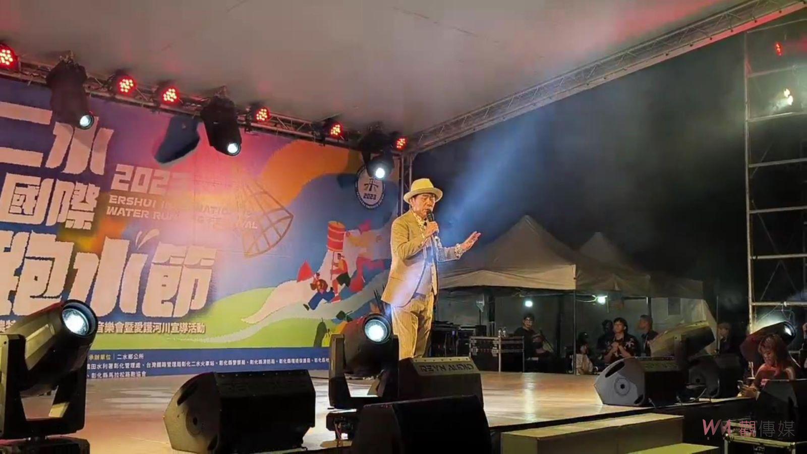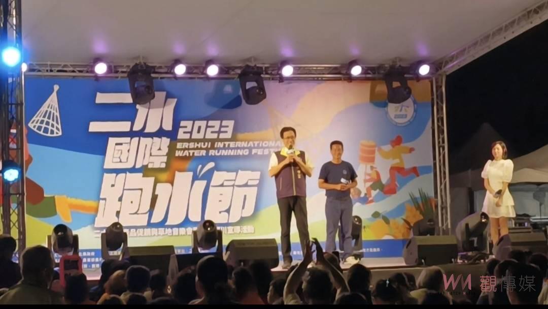 (觀傳媒彰化新聞)【記者陳雅芳/彰化報導】「2023二水國際跑水節」一連兩天在二水市區熱鬧舉行,為延續白天熱潮,彰化縣政府及二水鄉公所特於11月4日晚間在二水鄉水心之初大草原安排跑水之夜晚會,邀請知名藝人演出,帶來多首經典歌曲,為5日的二水跑水馬拉松暖身,由副縣長林田富與二水鄉長蘇界欽等人一同與民眾同歡,晚會邀請知名藝人演出,帶來多首經典歌曲,為二水跑水馬拉松暖身。