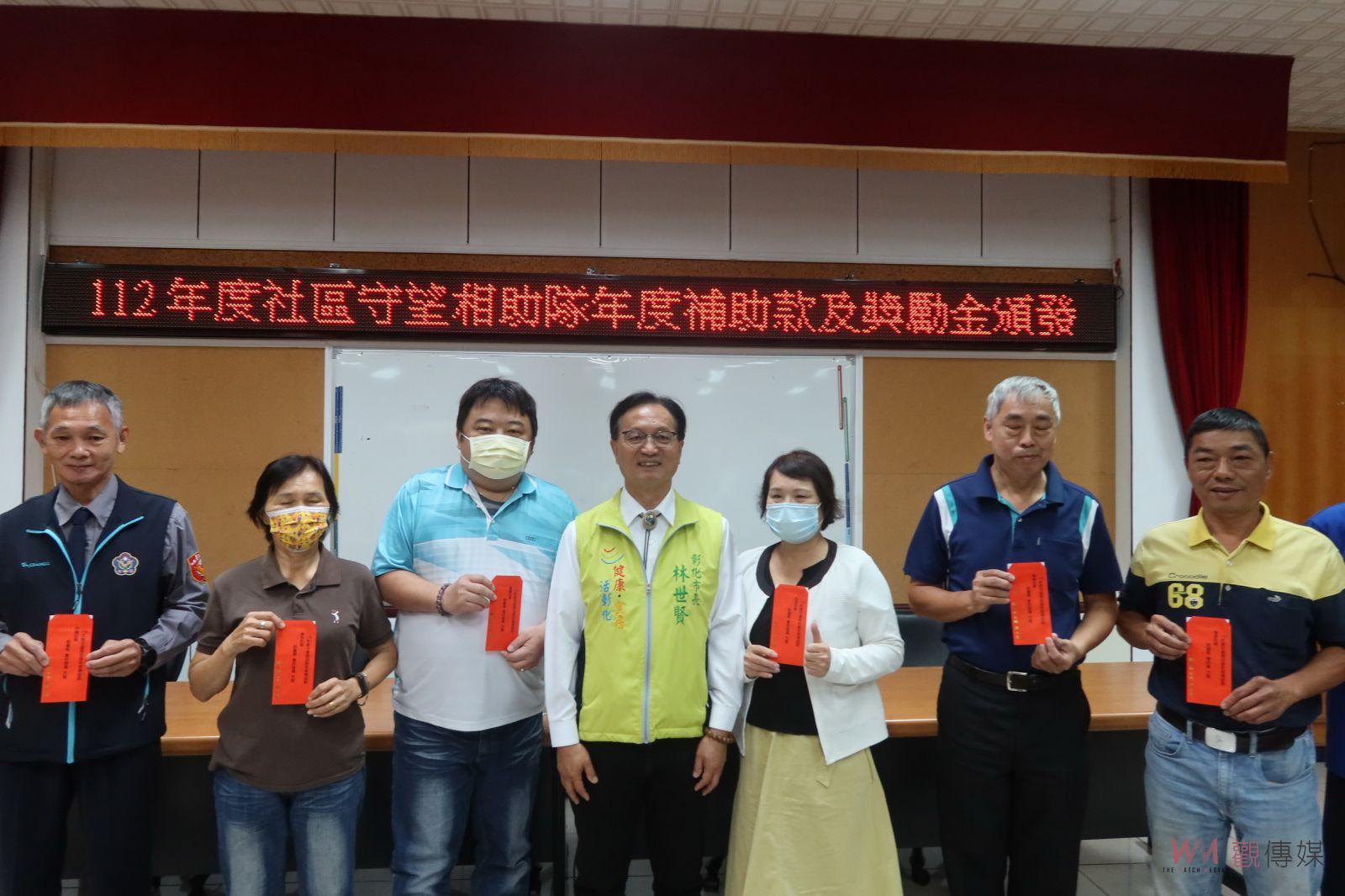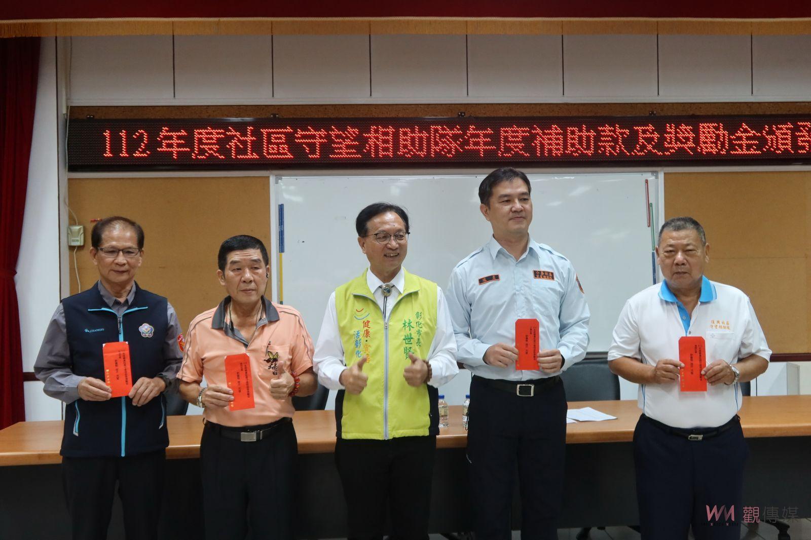 (觀傳媒彰化新聞)【記者陳雅芳/彰化報導】社區守望相助隊,是協助警方維持地方良好治安的重要力量。彰化市公所今(7)日上午公所第一會議室,頒發112年度裝備補助款,給22隊的社區守望相助隊,共計343萬3,330元;市長林世賢同時也另頒發共12萬7千元的獎勵金,給21個獲得111年度考評績優社區守望相助隊,林世賢說,社區無名英雄,感謝您們默默的付出!