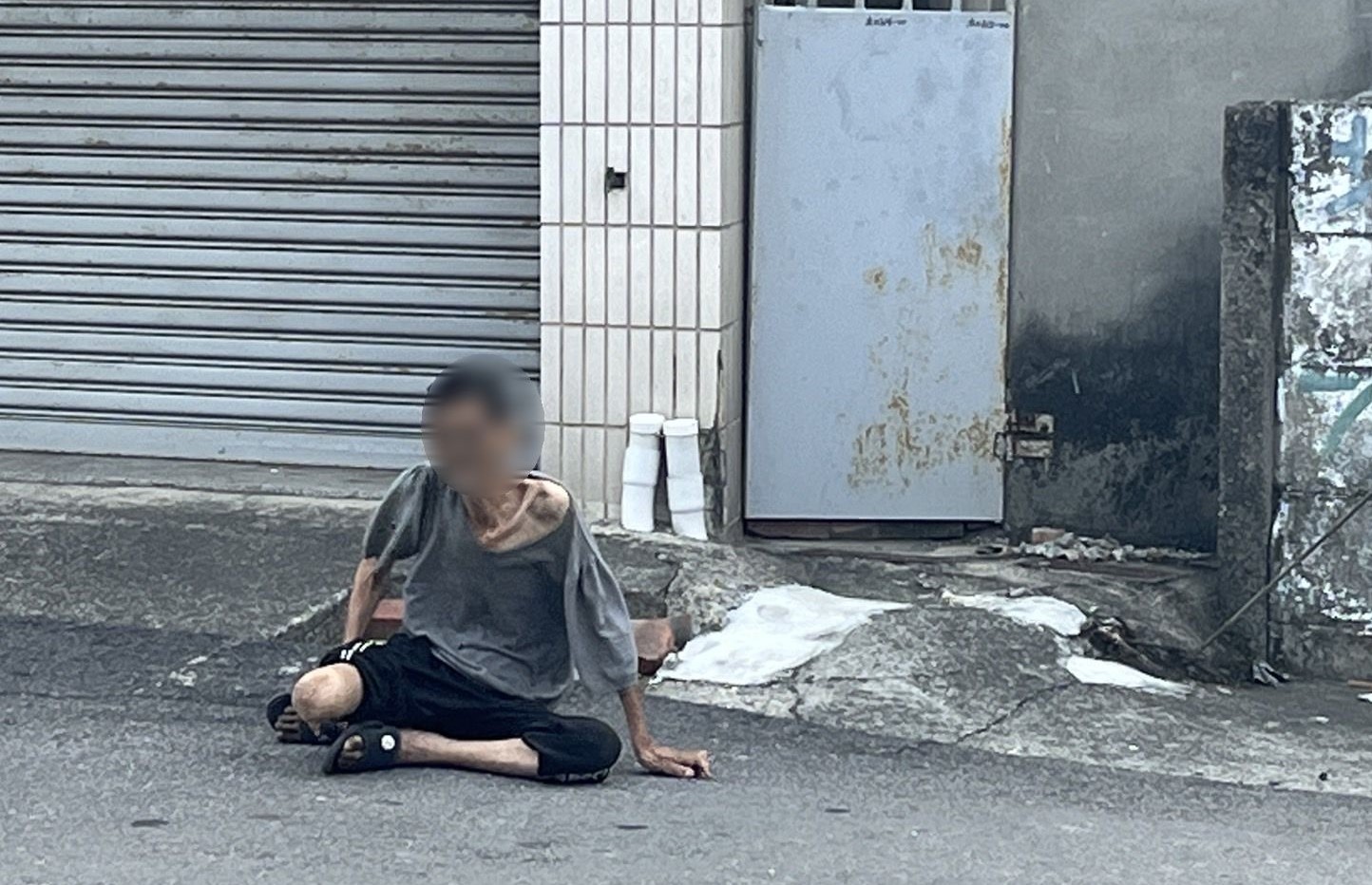▲當警員到達現場時,發現男子因身體不適而癱坐在馬路旁。