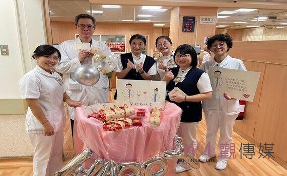 護理部主任李玉茹表示,醫療現場中醫師與護理師是合作夥伴,每年護師節護理師們都會收到醫師的心意與祝福,剛好周日就是醫師節,透過柿子與花生造型糕餅,傳達護理師暖暖的心意。門診外,各護理站、手術室與檢查室,由護理長傳遞心意與禮物,祝福每位醫師「醫師節快樂!」