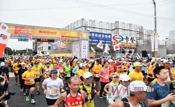 台灣米倉田中馬拉松今(12)日清晨6時許,在彰化縣長王惠美、田中鎮長蕭淑芬,以及主力贊助商泰山企業(股)公司總經理蔡政達等多位貴賓共同鳴槍下,1萬6,500名來自世界各地的跑者由起跑拱門聲勢浩大出發。