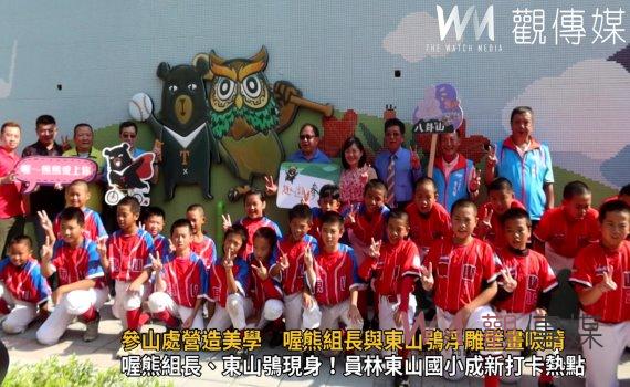 (觀傳媒彰化新聞)【記者陳雅芳/彰化報導】彰化縣員林市東山國小大門外牆出現喔熊和東山鴞!配合觀光署推動景區美學,參山國家風景區管理處在員林市東山國小大門外牆設置馬賽克拼貼壁畫,壁畫中有觀光大使喔熊組長、東山國小的代表吉祥物東山鴞的大型浮雕,今(15)日舉行揭幕儀式,也吸引路過的遊客與當地居民爭搶拍照。