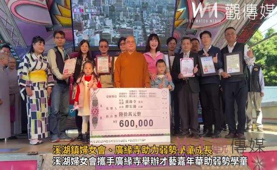 (觀傳媒彰化新聞)【記者陳雅芳/彰化報導】為了協助彰化縣溪湖鎮的弱勢學童能夠無礙學習,今(18)日,溪湖婦女會在福安宮舉辦了一年一度的才藝嘉年華活動。此次活動得到了廣緣寺的大力支持,共捐款60萬元給鎮內10所高國中小學的弱勢學生,受助學生及其校長紛紛向廣緣寺師父表示感謝。