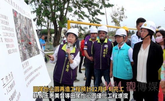 (觀傳媒彰化新聞)【記者陳雅芳/彰化報導】總造價1.28億元的彰化縣田尾怡心園再造工程,近兩年來因種種原因延宕,引發地方商家及遊客的不滿。縣長王惠美今(1)日前往視察工程進度與施工品質時說明原委,目前進度符合預期,可望於12月中旬完工,預定於明年春節前開放使用,一起迎接田尾新春賞花觀光人潮。