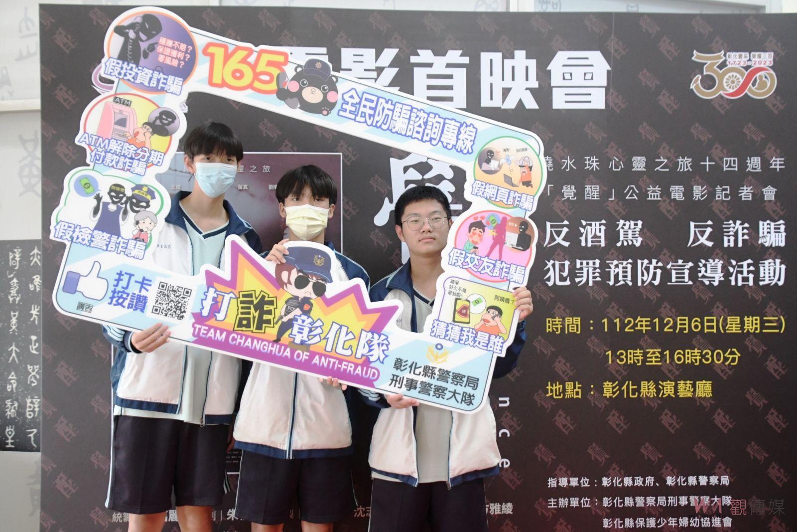 (觀傳媒彰化新聞)【記者陳雅芳/彰化報導】為降低酒駕發生率!彰化縣警察局攜手保護少年婦幼協進會,與「曉水珠心靈之旅」志工團合作,今(6)日於彰化縣演藝廳舉辦「覺醒」反酒駕、反校園霸凌電影展演,希望透過深刻的電影體驗,提升社會對酒駕及霸凌的警覺,同時結合反詐騙宣導,呼籲民眾保護自身財產安全。