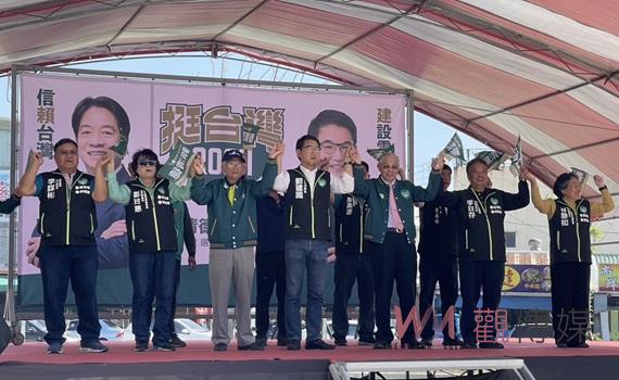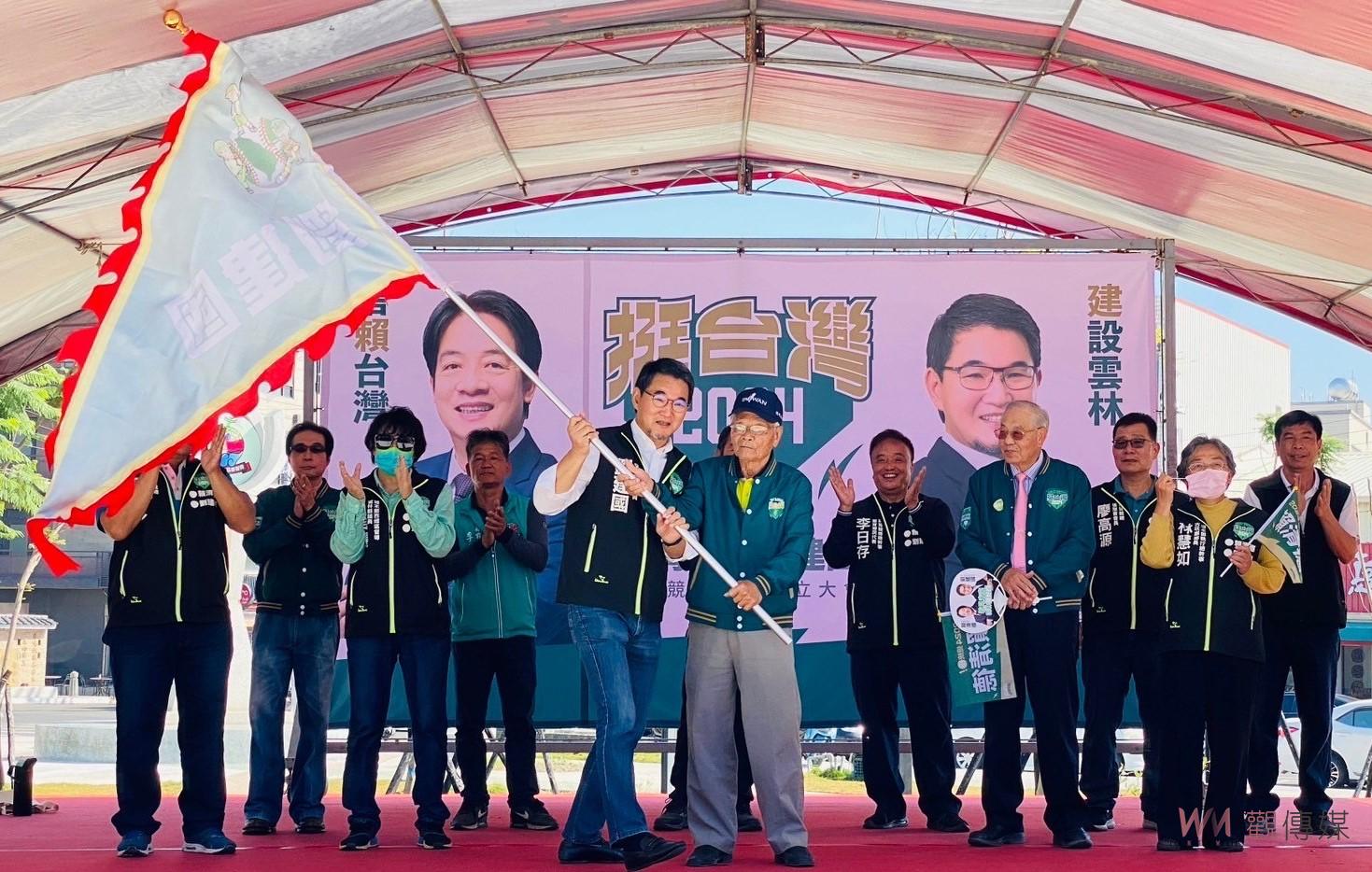 ▲「賴清德劉建國崙背聯合競選總部」成立大會,由劉建國頒授戰旗。