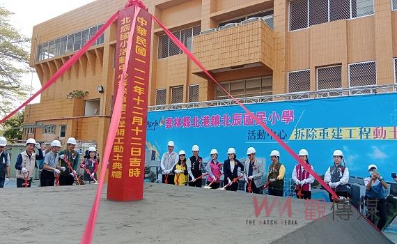 (觀傳媒雲林新聞)【記者洪佳伶、蘇榮泉/雲林報導】雲林縣北港鎮北辰國小今(12)日舉辦活動中心拆除重建工程動土典禮,由縣長張麗善、行政院雲嘉南區聯合服務中心執行長許根尉、教育處處長邱孝文、北港鎮長蕭美文、副議長蔡咏锝、議員蔡岳儒、議員蔡孟真、議員黃文祥、議員陳俊龍、黃凱議員特助黃鳳、北港代表會主席黃美蘭、洪毅一醫師、北辰國小校長陳明誌等人共同主持,北辰國小活動中心拆除重建工程總經費達2.29億,經費之高位列全國單一活動中心興建經費之冠。經費由教育部國民及學前教育署補助1.39億,雲林縣自籌約9,000萬元。預定將於114年6月底前完工,作為114年雲林縣舉辦全國運動會場館之一。