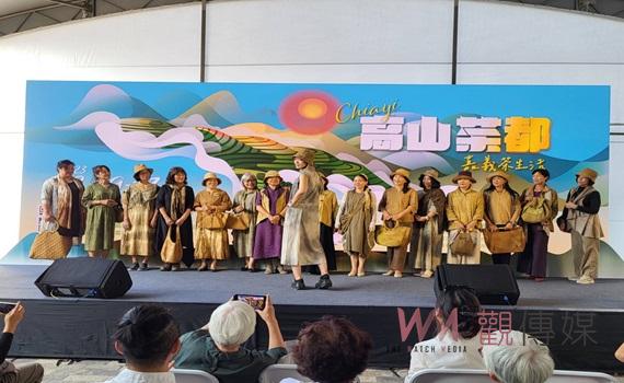 (觀傳媒嘉義新聞)【記者邱嘉琪/嘉義報導】「2023高山茶都.嘉義」在嘉義中埔鄉金蘭穀倉隆重登場中,13日下午2點由社團法人嘉義縣茶文化協進會理事長莊玉端帶領會員進行素人走秀,展現以阿里山高山茶為染料,加入設計元素的茶布植染服飾,讓人感受植染服飾的飄逸素雅之美,也見證茶產業精緻昇華的藝術價值。