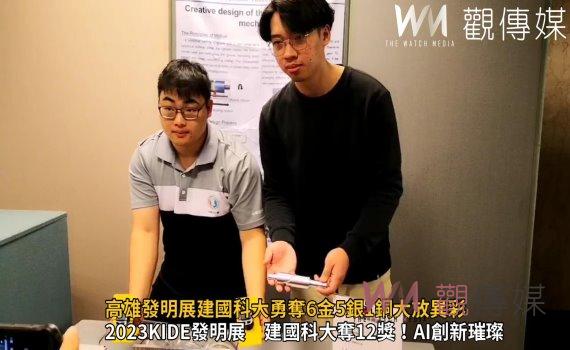 (觀傳媒彰化新聞)【記者陳雅芳/彰化報導】「2023KIDE國際發明暨設計展」在高雄展覽館舉行,建國科技大學研發團隊展現強大實力,共參展12件作品,斬獲6金、5銀、1銅及大會最高榮譽「鉑金獎」,今(13)日舉行成果發表,建國科大校長江金山說,此次佳績不僅展現出學術研究的高度水準,更凸顯了學校在產學合作和跨領域整合方面的卓越成就。