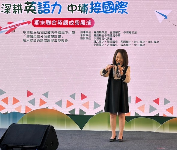 鄉長李碧雲表示,英語外師協同教學計畫,中埔鄉公所是嘉義縣第一個由公所自行研擬計畫、籌編經費並執行的鄉鎮,從110年實施至今,即將邁入第四年,今年特地選在嘉義縣博茶會演出,不僅符合我們中埔接國際精神,同時要讓大家知道,中埔除了豐富農村風情,碧雲對鄉內教育也是不遺餘力挹注資源。