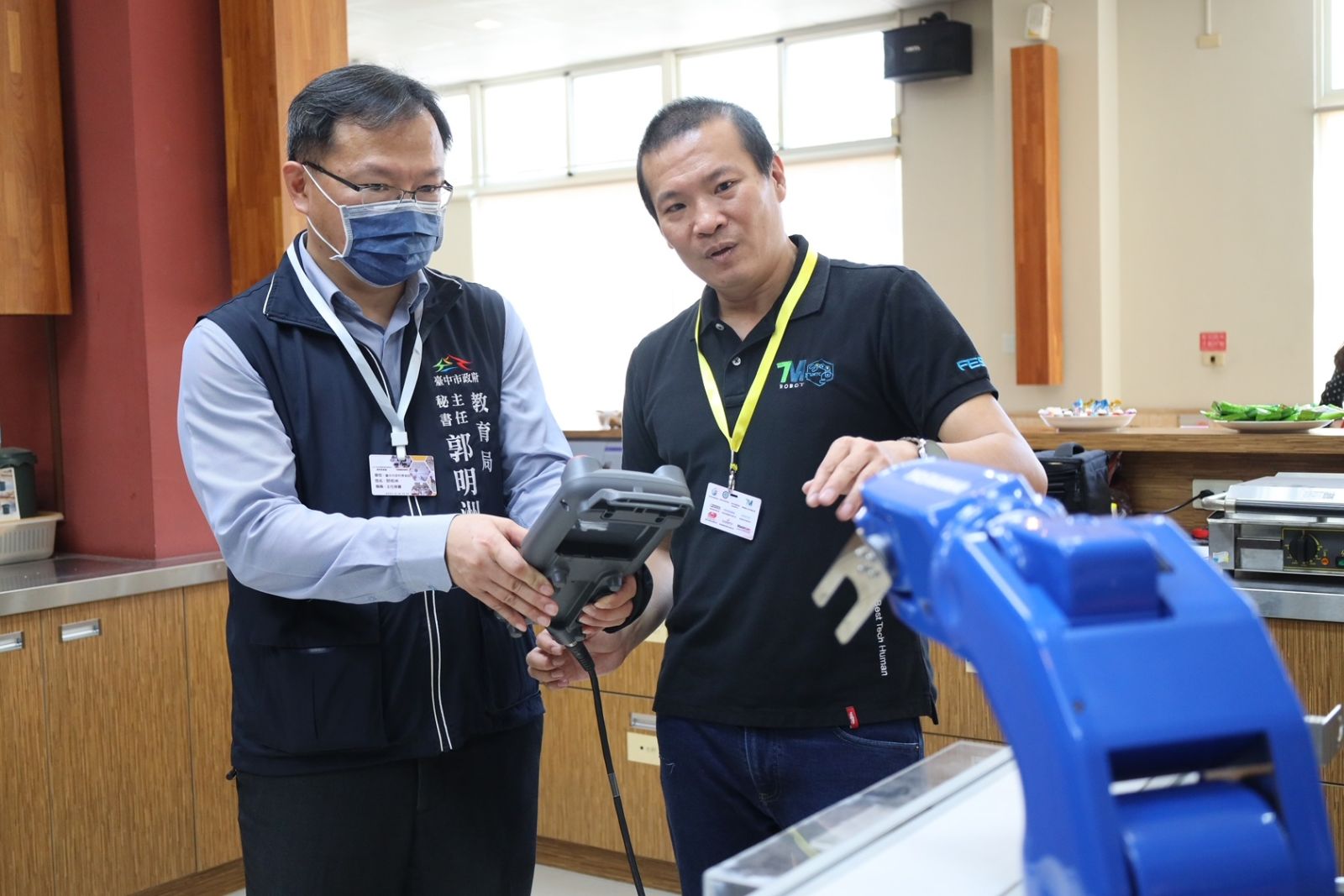 教育局長蔣偉民表示,為培育符合全球產業未來的人才需求,於111年在台中高工成立智慧製造中心已滿周年,教育局持續挹注經費,引進國際設備、技術與課程,經由中心的智慧製造教師社群內化後,重新設計適合台灣學生的教材。目前中心每週末分別持續辦理國小、國中、高中的智慧製造課程,從仿生獸製作、無線電力傳輸、機械手臂到機器視覺結合AI等系列課程,皆廣受家長與學生好評。