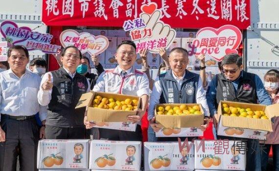 李曉鐘表示,社會上需要幫助的人非常多,16年來希望以小小的心意拋磚引玉,讓社會賢達與熱心人士共襄盛舉,讓社會多一點愛心與溫暖。今日包括:市府社會局長陳寶民、桃園區長許敏松等人,也出席捐贈萬斤柳丁活動。(圖/桃市府新聞處提供)