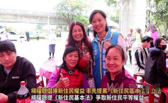楊曜聰他強調,現今已取得中華民國身分證的新住民約60萬人,再加上新二代,總人口數逼近百萬。為此,他提出政府應仿效客家委員會與原住民族委員會的模式,成立「新住民委員會」,以整合目前分散在各單位的相關業務,提高其組織位階,更加重視新住民的需求。