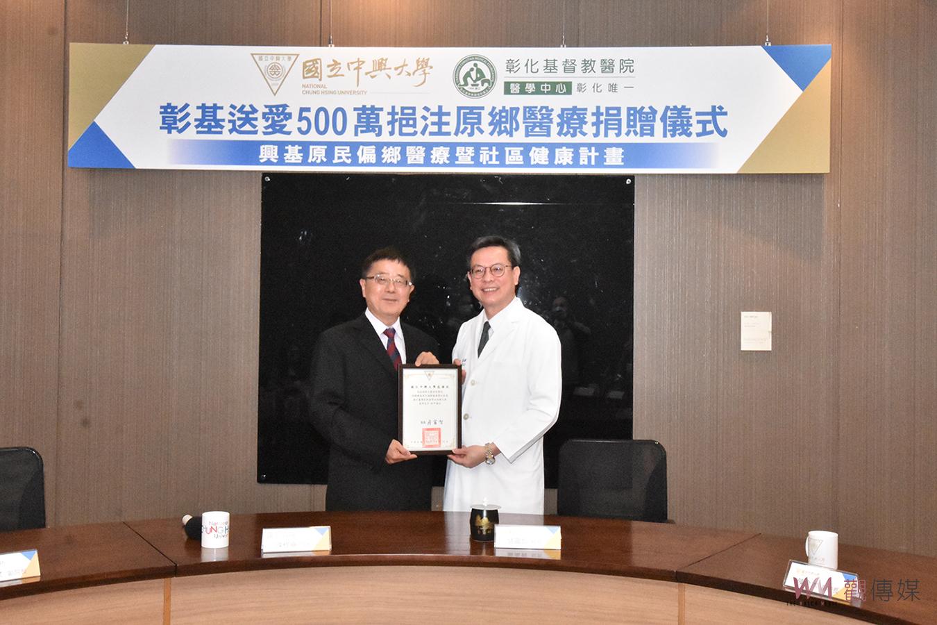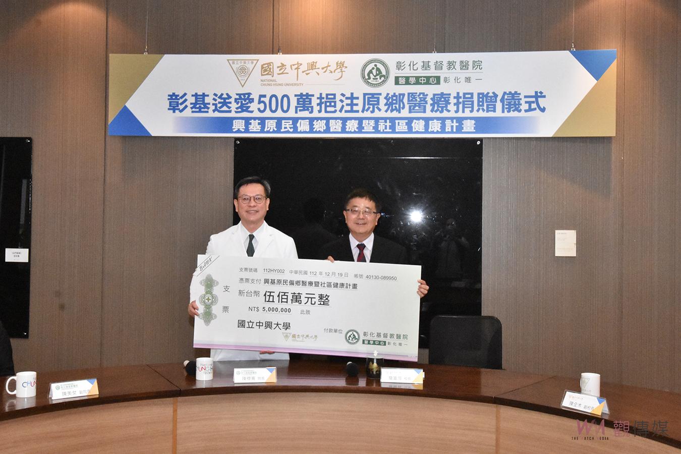 (觀傳媒彰化新聞)【記者陳雅芳/彰化報導】彰基醫學中心關懷原住民及偏鄉醫療之不足,今(19)日慷慨捐贈500萬元予國立中興大學,由彰基總院長陳穆寬教授代表捐贈,興大校長詹富智授予,雙方攜手推動「興基原民偏鄉醫療暨社區健康計畫」,致力於改善偏鄉和原住民地區的醫療狀況。