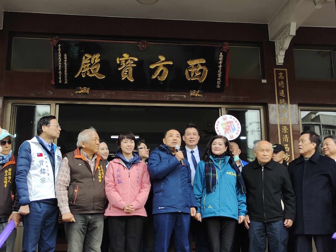 ▲黃文峯與黃麗貞帶領群眾公開力挺侯友宜。