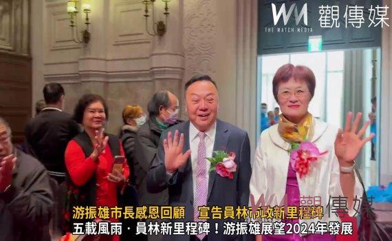 (觀傳媒彰化新聞)【記者陳雅芳/彰化報導】在一連串的歡樂與感激中,彰化縣員林市長游振雄,今(23)日於皇潮鼎宴婚宴會館舉辦就職五週年暨第三屆市政顧問團成立大會,以熱情的笑容向市民報告過去五年的施政成果。此次大會以「幸福員林智慧城市」為主軸,深入報告社福政策、重大建設、觀光發展等多方面的成果,並對2024年的發展願景進行展望,致力打造更宜居的城市環境。