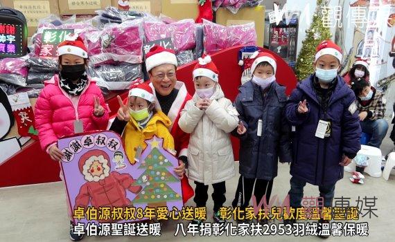 (觀傳媒彰化新聞)【記者陳雅芳/彰化報導】在寒冷的冬季裡,彰化縣前縣長卓伯源叔叔持續展現卓越的愛心,今(23)日再度變身聖誕老人,現身彰化家扶中心捐贈311件羽絨外套,這也是卓伯源連續第8年捐贈,累計捐出2953件保暖羽絨外套,這場愛心行動有如羽翼般飛向彰化弱勢家庭,成為寒冬中最溫暖的陪伴。