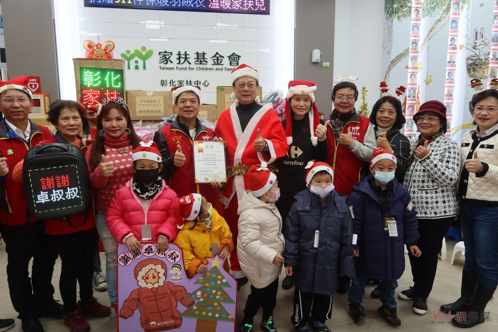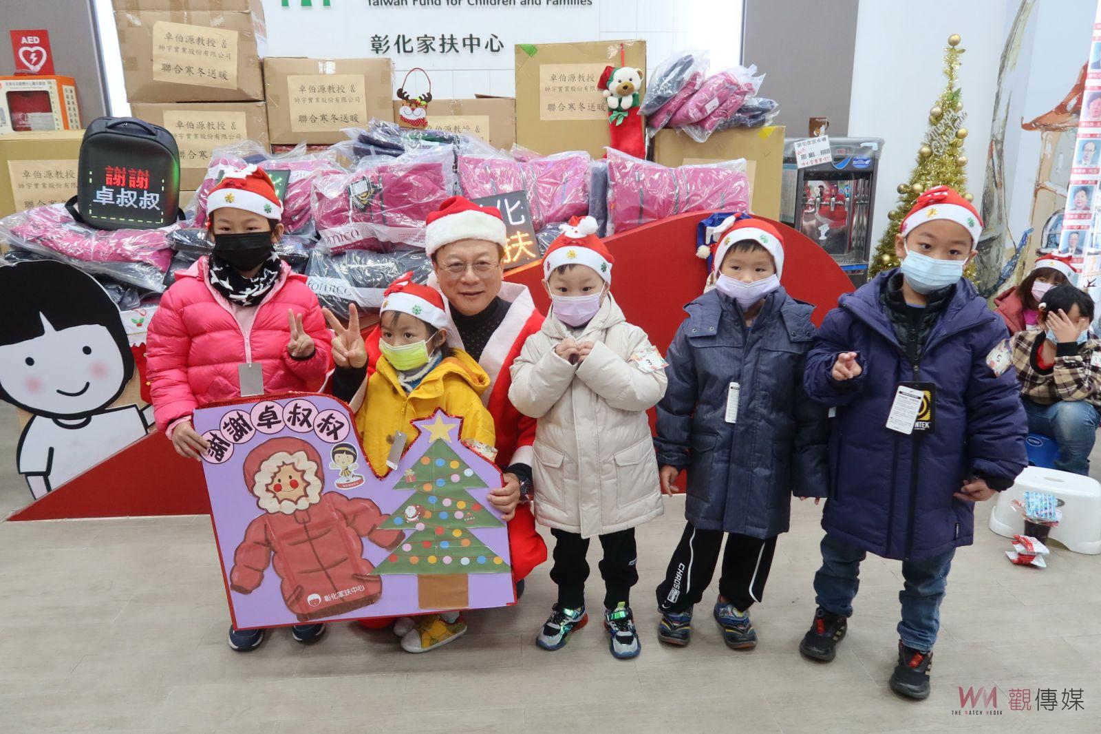 ▲彰化縣前縣長卓伯源叔叔再度展現溫暖心靈的愛心,再度前往彰化家扶中心捐贈311件羽絨外套,為經濟貧困的家扶兒送去寒冬的關懷。