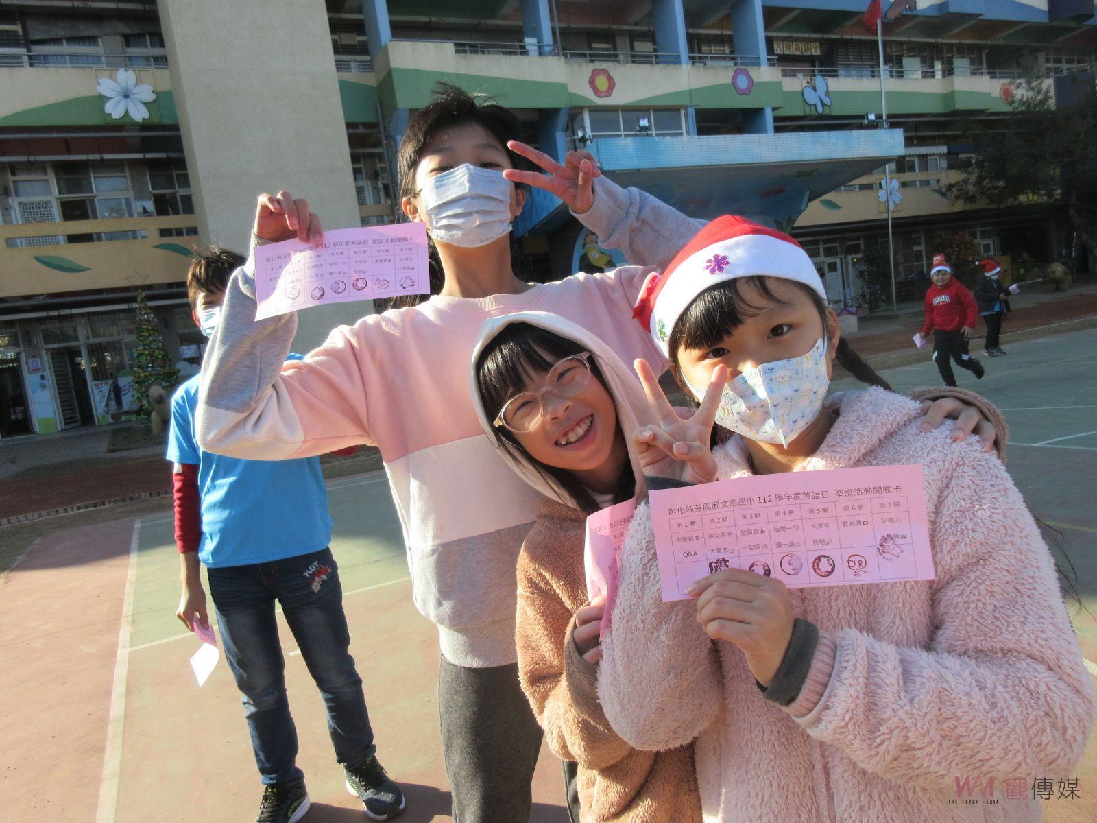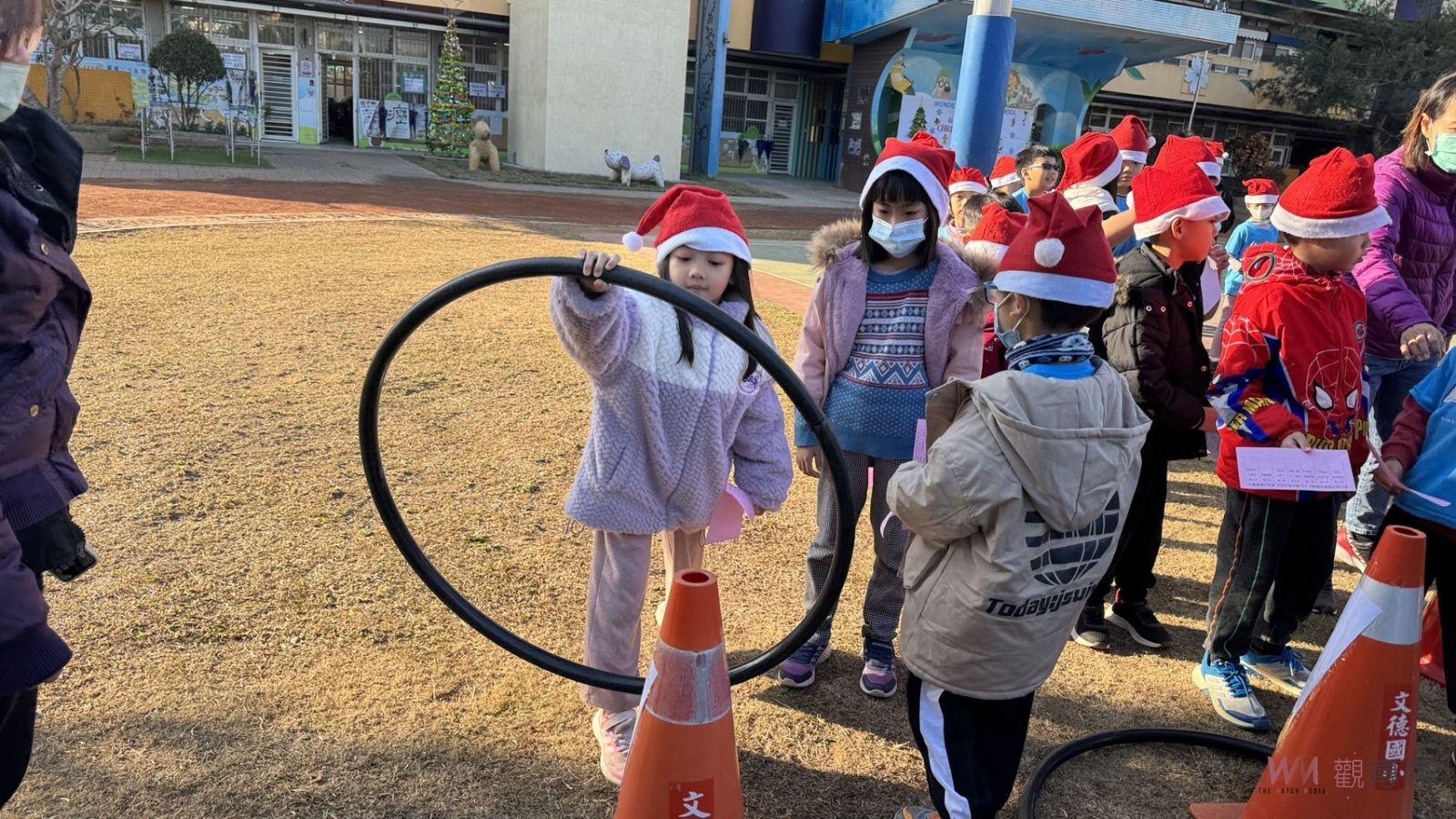 (觀傳媒彰化新聞)【記者陳雅芳/彰化報導】位於卦山上的芬園鄉文德國小,今(25)日聖誕節中舉辦了一場精彩絕倫的慶祝活動,為學生營造難忘的節慶氛圍,學校通過結合國際教育,推出了英語闖關活動,並設置七個巧思獨具的關卡,讓學生在歡樂中獲得聖誕禮物。校長李政穎更以聖誕老人身份亮相,騎著三輪車給全校師生帶來歡笑。