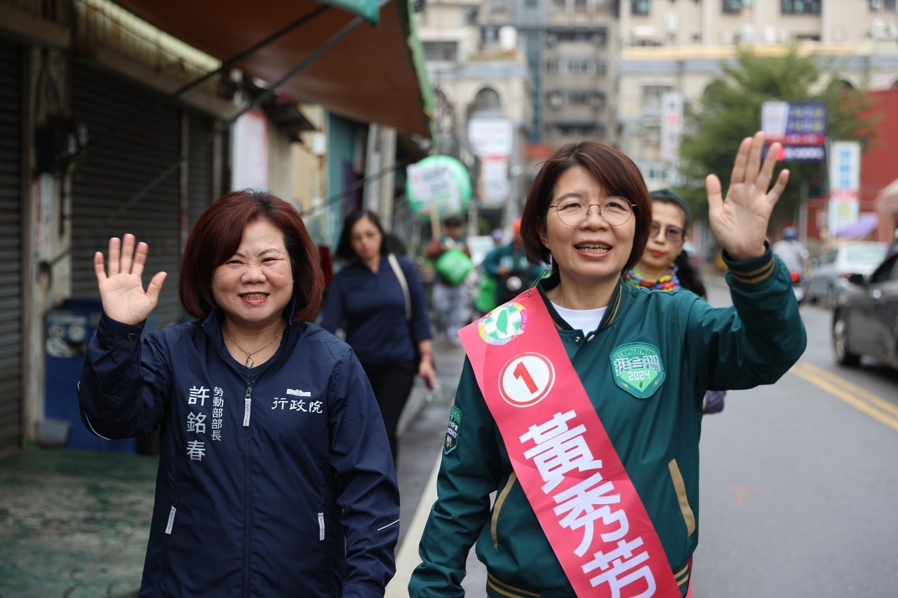 黃秀芳則在雨中感謝許銘春部長的陪同,強調部長的風雨無阻的支持令她深感感動,她長期在衛環委員會關心勞工權益,未來也將繼續努力,以爭取和保障勞工的權益。