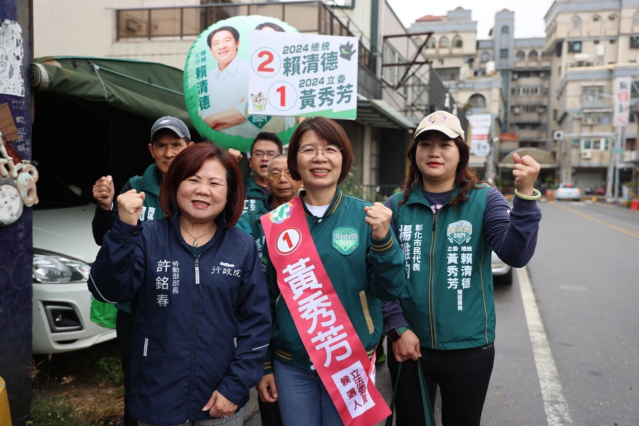(觀傳媒彰化新聞)【記者陳雅芳/彰化報導】立委選戰激烈!彰化第二選區立委候選人黃秀芳在連日的陰雨中,依舊擁擠的行程中,今(28)日下午在彰化市展開徒步掃街,更有勞動部長許銘春陪同,關切地漫步於街頭,儘管雨勢不減,但黃秀芳的行程依舊擠滿,展現了對選民的認真態度。