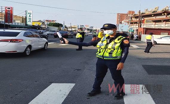 ▲疏緩元旦連假車潮,北港警加強交通熱區管制措施及宣導。
