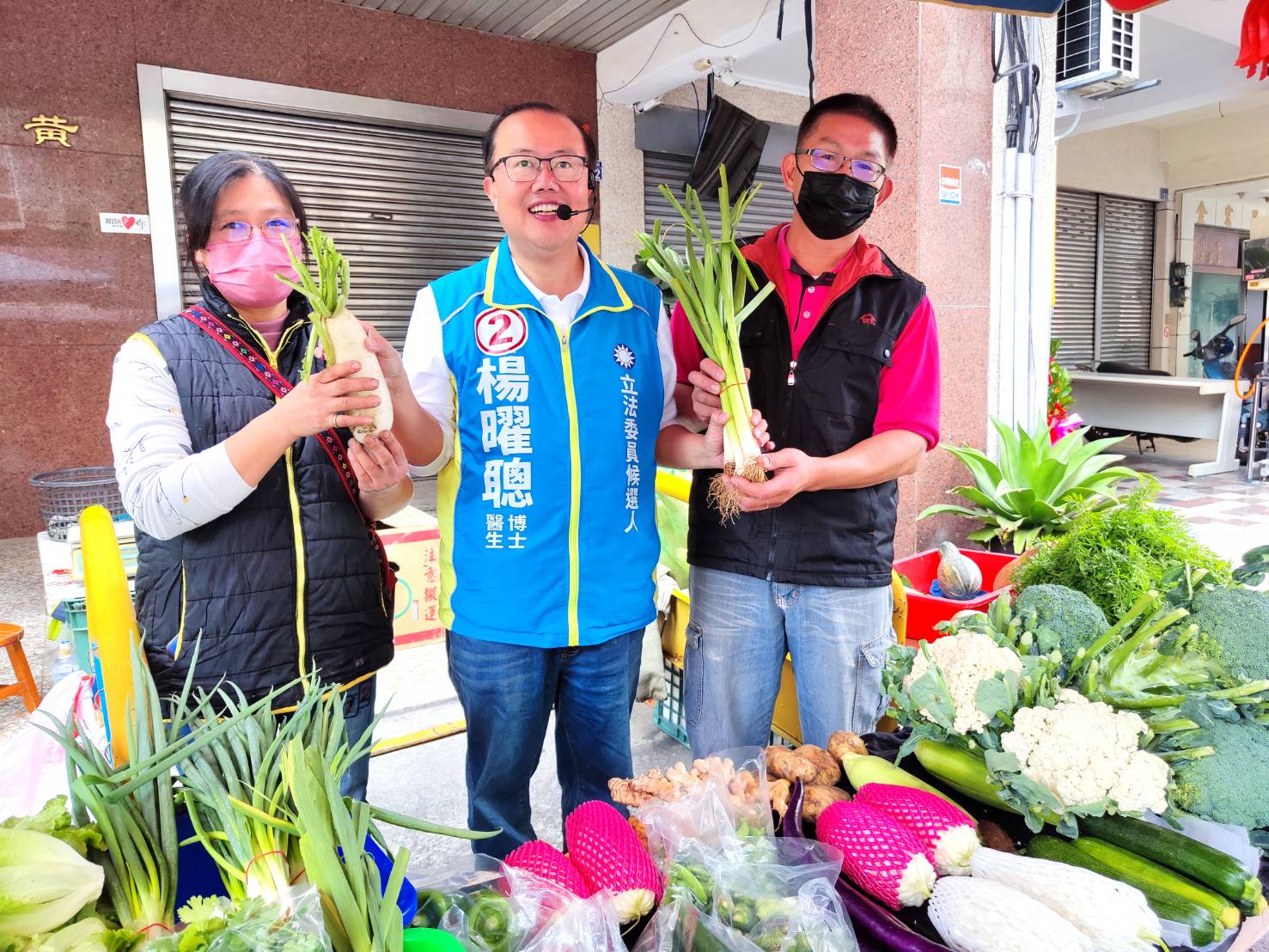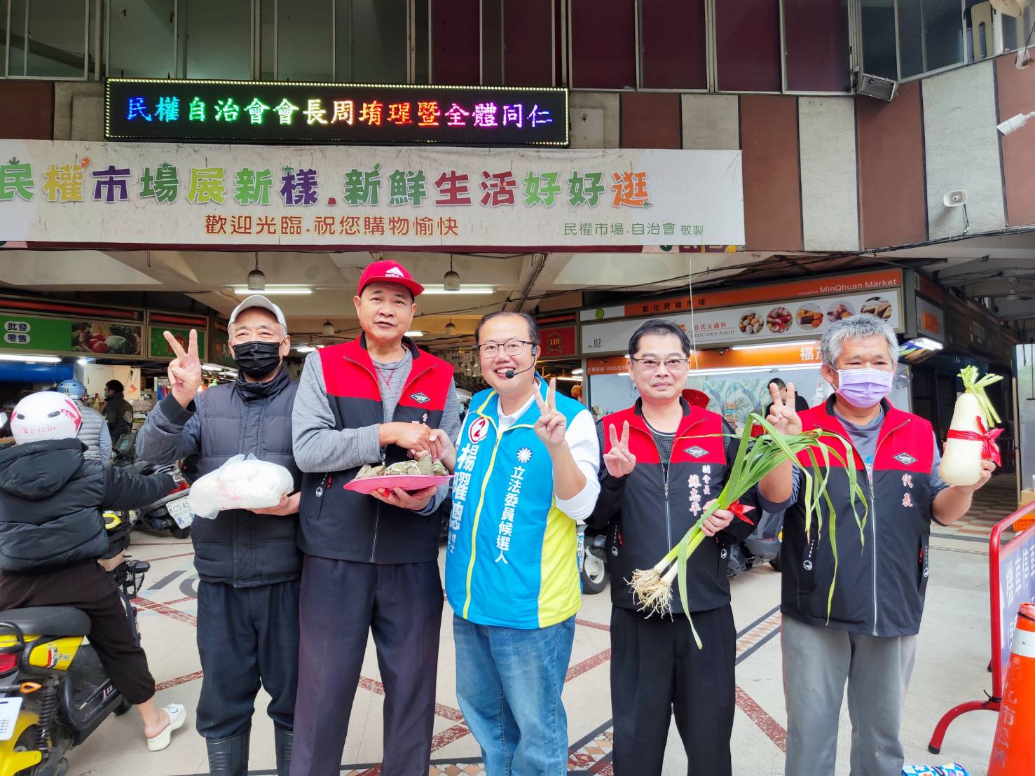選戰倒數楊曜聰勤走基層獲得鄉親的肯定,今天的拜票,陸續有攤商送他大蒜預祝凍蒜、遞上菜頭祝福好彩頭、送上橘子祝福選情大吉大利,民權市場自治會周堉瑆會長及攤商們也送上包子、粽子等吉祥物,收穫了滿滿的祝福。